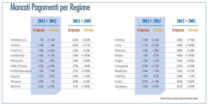 I trend dei Mancati Pagamenti delle Imprese italiane nel 2013