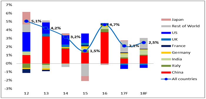 Grafico 1 - Contributo alla crescita nella vendita mondiale di veicoli