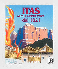 Alla presenza di Enrico Menegazzo – responsabile commerciale nazionale di Filatelia di Poste, Giuseppe Consoli – presidente ITAS, Fabrizio Lorenz – presidente ITAS Vita, Alberto Pacher – vicepresidente vicario ITAS, Alexander Von Egen – vicepresidente ITAS, Mirko Bisesti – assessore all’istruzione, università e cultura Provincia di Trento e Franco Ianeselli – sindaco di Trento, è stato effettuato l’annullo filatelico che ha dato il via ufficiale alla “vita” del francobollo. Il francobollo è stato realizzato dal Poligrafico e Zecca dello Stato per conto del Ministero dello Sviluppo Economico ed appartiene alla serie tematica “Le eccellenze del sistema produttivo ed economico”. Il francobollo raffigura gli elementi distintivi delle radici storiche di ITAS Mutua: i masi di montagna e i fienili, caratteristici delle comunità territoriali montane, sono avvolti dalle fiamme di un incendio: il primo rischio che ha spinto le comunità locali di inizio 8800 a unirsi in forma mutualistica per potersi proteggere. Sullo sfondo svettano le montagne del Trentino, in particolare il “Crozzon” nelle Dolomiti di Brenta.