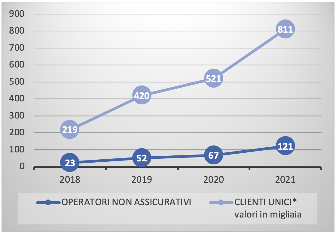 È il modello Open Insurance che, secondo quanto rileva Italian Insurtech Association è aumentato nei primi sei mesi del 2021 del 426% circa rispetto al 2018 a livello di aziende non assicurative che vedono assicurazioni. A giugno di tre anni fa, infatti, erano state censite 23 aziende non strettamente insurance che avevano venduto nei 12 mesi precedenti polizze a 219.000 utenti singoli assicurati, mentre a giugno di quest’anno i player non assicurativi hanno superato quota 120 per un totale di 811.000 singole persone assicurate e si prevede che entro il 2025 saranno 10 volte tanto.