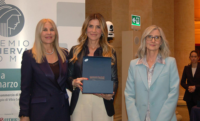 Laura Di Felice, Head of Marketing & Communication di MAG (al centro) riceve il Premio Minerva